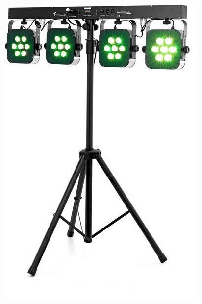 - Combinaison sur pieds répondant à la technique LED résolument simple mais éfficace composée de 4 Effets Mini MoonFlower et de 2 rampes de projecteurs. Ces derniers peuvent diffuser une ambiance colorée et feutrée pendant le repas, puis surprendre par leur puissance durant la soirée